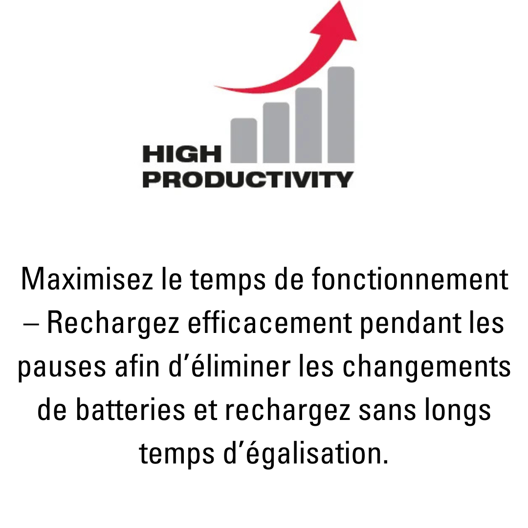 - Des temps de recharge plus rapides réduisent les arrêts improductifs