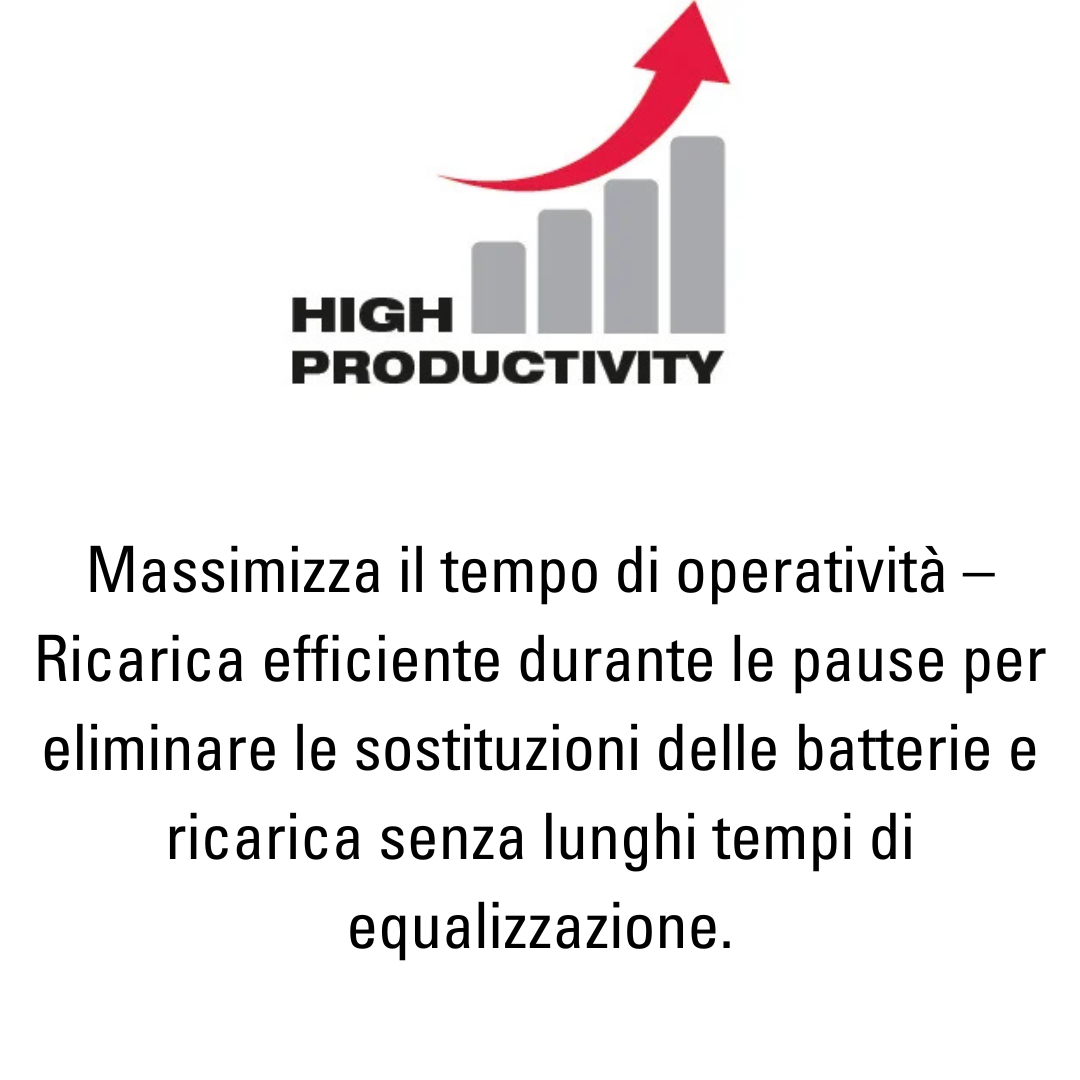 • Tempi di ricarica più rapidi riducono i tempi di inattività improduttivi